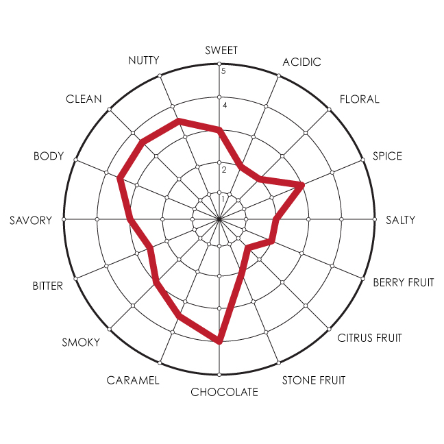 We created this wheel using our own cuppings to display this coffee’s flavor profile. The closer to the outside of the circle, the higher the coffee scores in that flavor category.